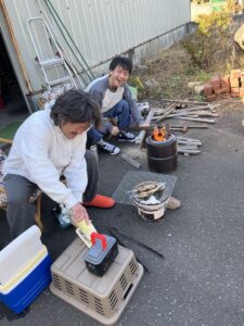 横で木を切る翔太^_^